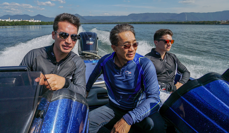 Nelson Nakamura é um ícone da pesca esportiva, com recordes e décadas de experiência. Renan, especialista em arremessos e apresentador na FishTV, traz técnica e conhecimento. Vitor representa a nova geração, conectando a marca com o público jovem.